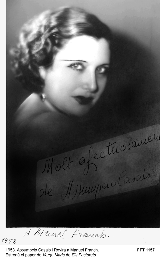 1958. Assumpció Casals i Rovira a Manuel Franch. Estrenà el paper de Verge Maria de Els Pastorets.